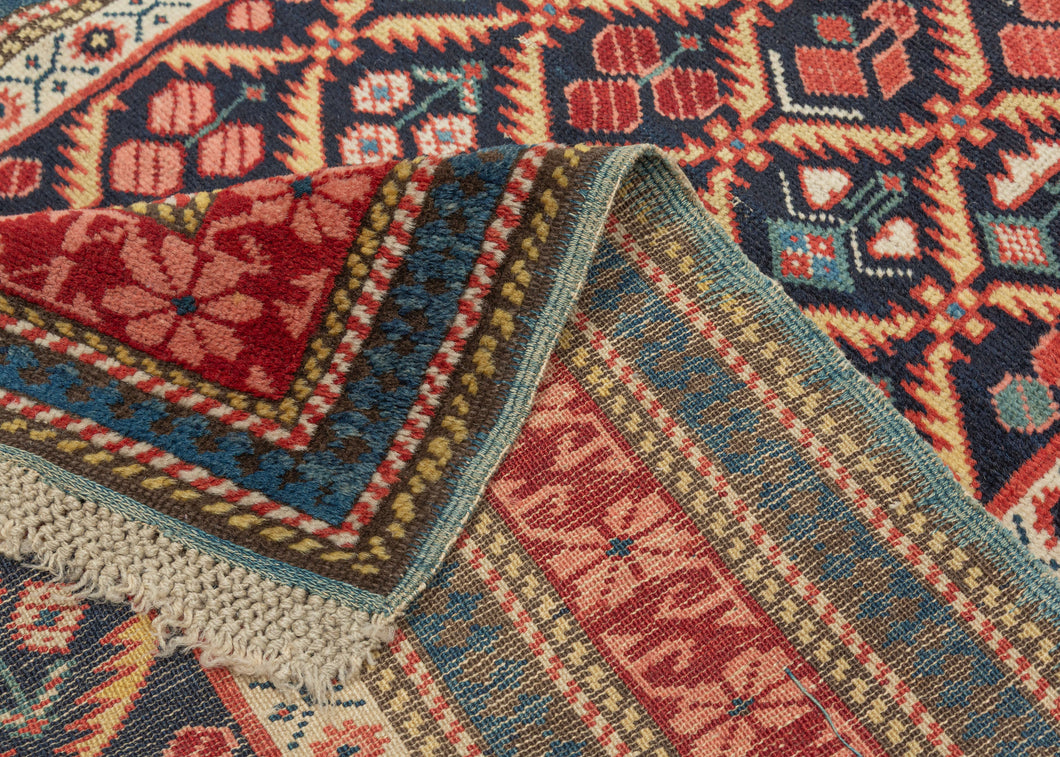 A top example of its type that is architectural, energetic, and deeply rooted in the Caucasian weaving tradition. Ideal for collectors or for anchoring a long corridor with color and authority.