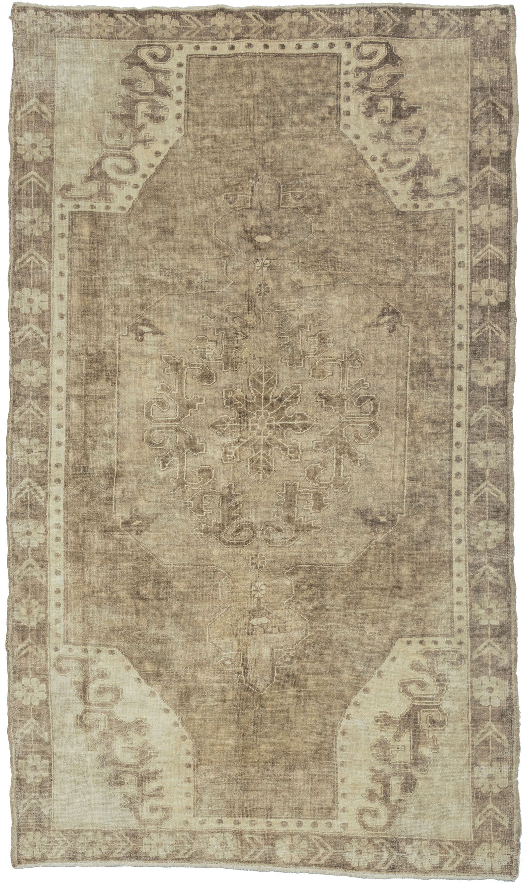 Vintage Brown and Gold Anatolian Rug - 5'2 x 8'10