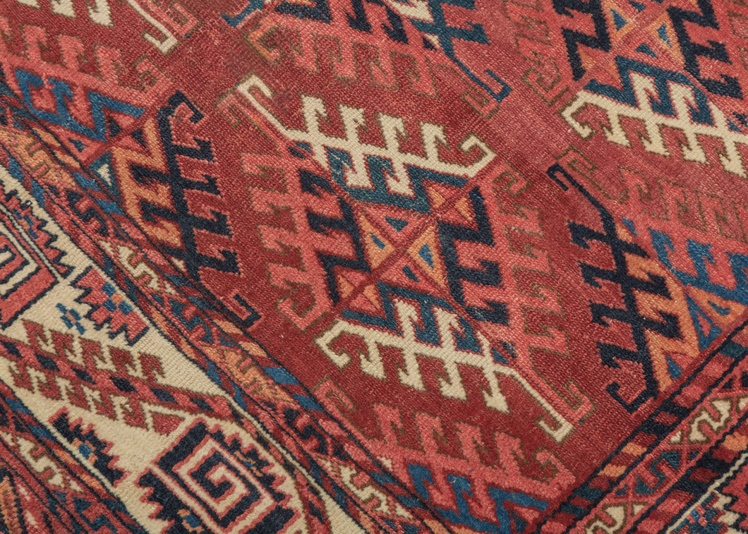 This Yomud Turkmen rug was handwoven during the early 20th century in Western Turkmenistan.